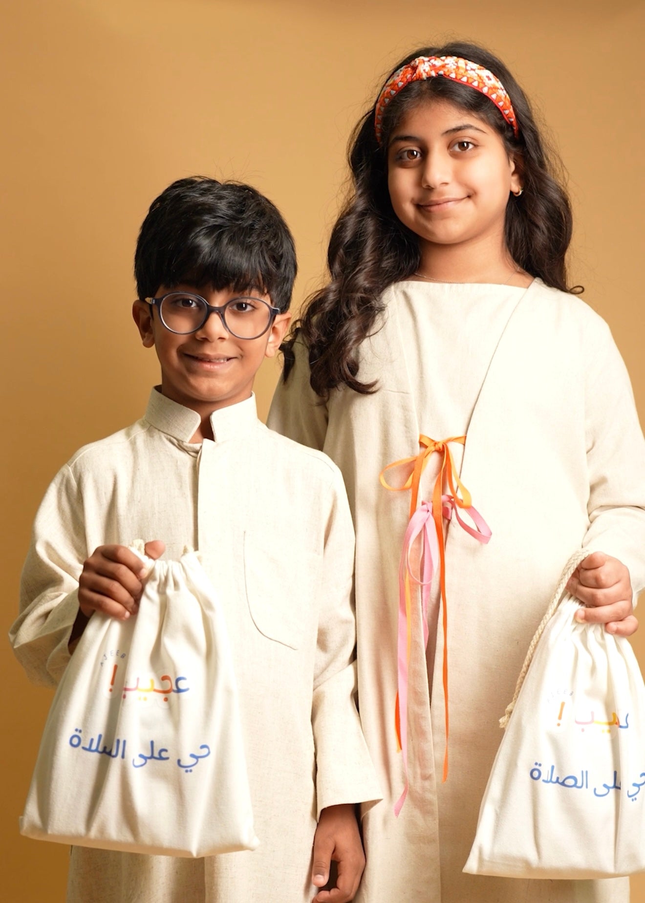 The Ajeeb Draah features a two-piece set with a beige linen inner dress and a matching linen beige outer dress, both adorned with the signature Ajeeb color logo for a stylish look.